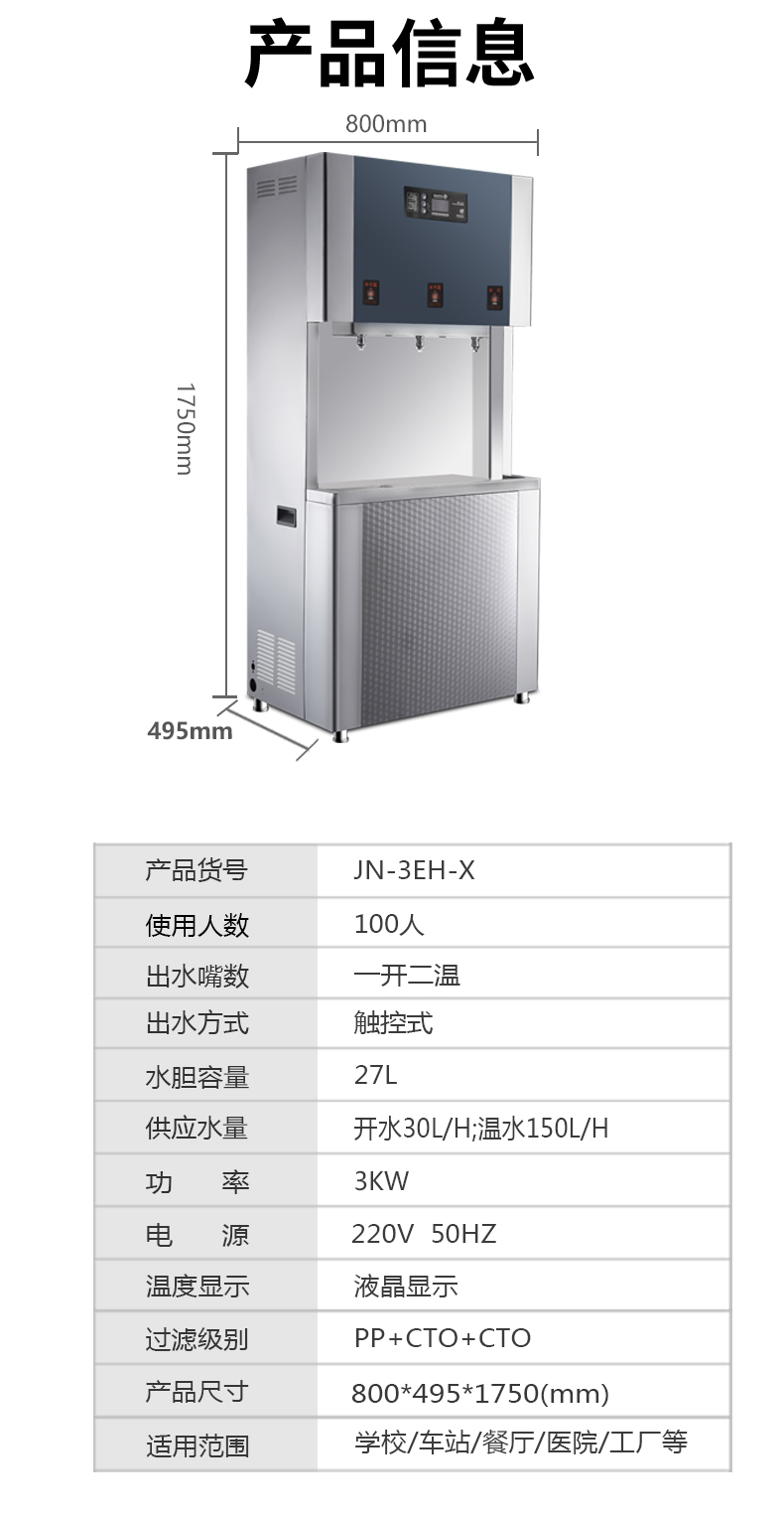 供水量:開水30升/時(shí) 溫開水150升/時(shí)